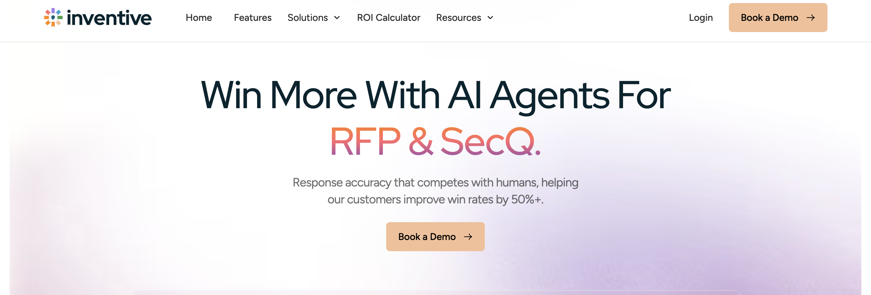 Inventive AI is an RFP automation platform built with a focus on content management and AI-driven drafting. It acts as a central hub for all your proposal content: you can upload past RFPs, import Q&A pairs from old spreadsheets or other tools, and even sync files from sources like Google Drive, SharePoint, or your website. Inventive’s AI then uses this knowledge base to generate first draft responses; the company claims it can improve response efficiency by over 70% by pulling accurate answers from your existing content. An AI content manager also flags any conflicting or outdated information in your sources to keep responses current.