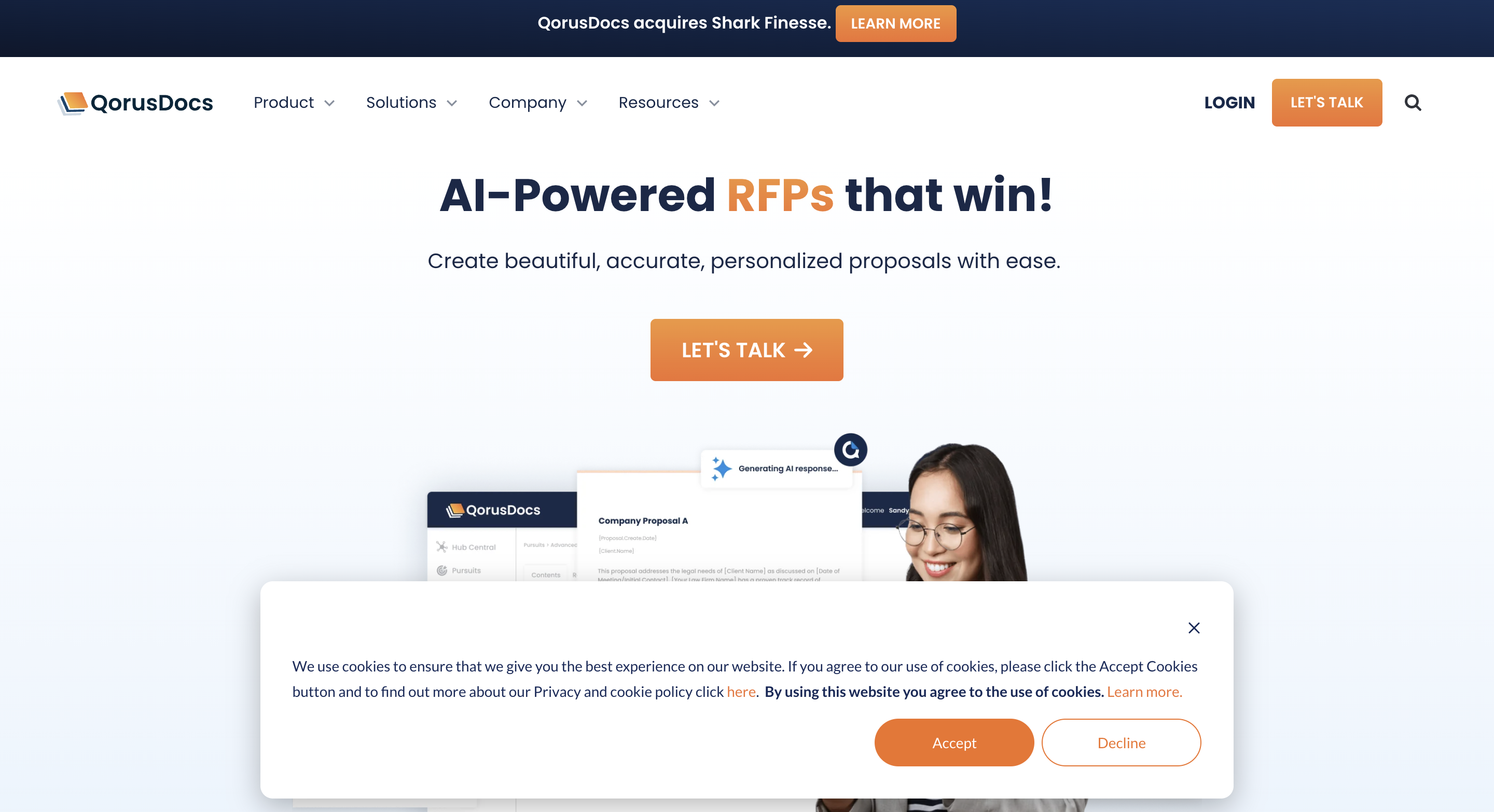 QorusDocs is cloud-based proposal management software that leverages automation and AI to help teams create branded proposals, presentations, and RFP responses more efficiently. It’s designed for collaborative use across business development, sales, marketing, and bid teams, allowing them to work together seamlessly and reuse content to increase win rates. QorusDocs also features an AI assistant (called “QPilot”) that can generate initial proposal drafts or answers, so teams spend less time on repetitive writing and more on tailoring the pitch to clients.