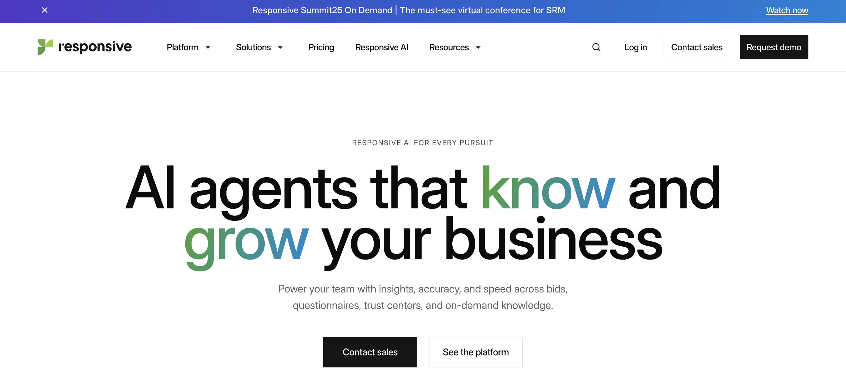 - AI-recommended answers: Responsive’s AI analyzes RFP questions and suggests the best-fit content from your database for each answer, increasing speed and consistency in responses. Over time, it “learns” which answers perform well.