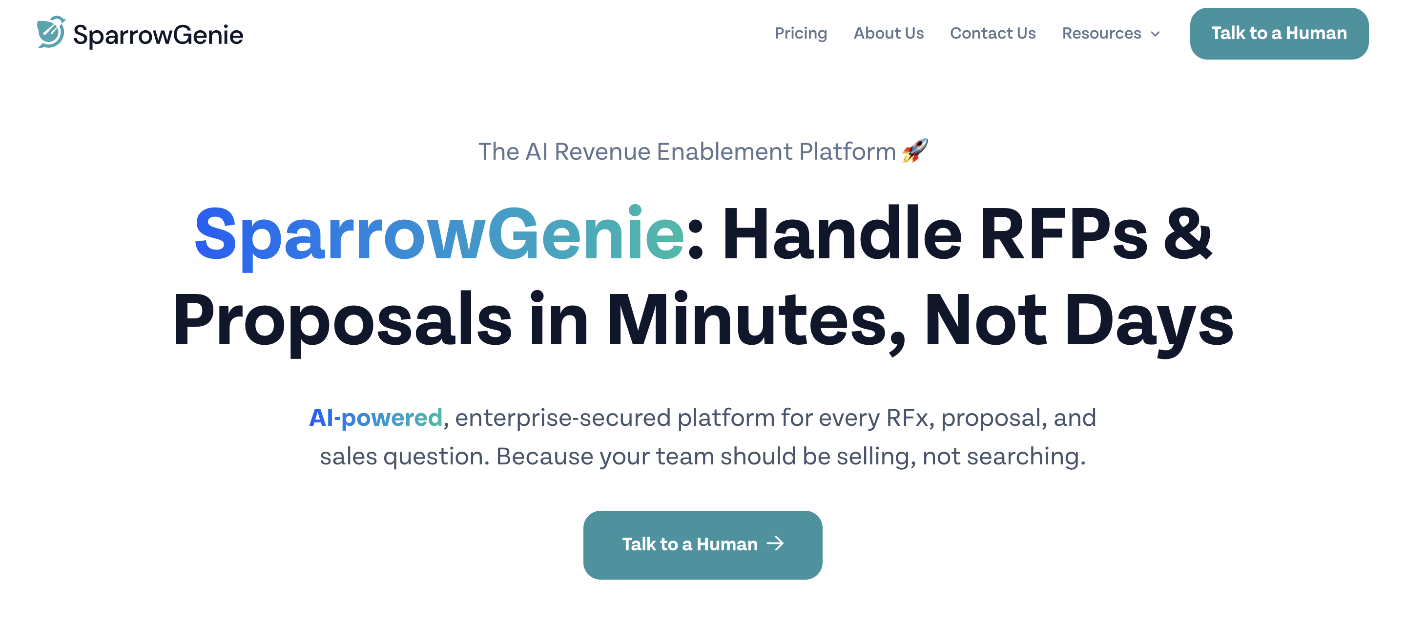 If you’re looking for a secure, enterprise-grade platform that brings structure, intelligence, and speed to your RFP workflows, SparrowGenie is built for you. Automate proposals, centralize content, and collaborate effortlessly, all while staying compliant and in control.