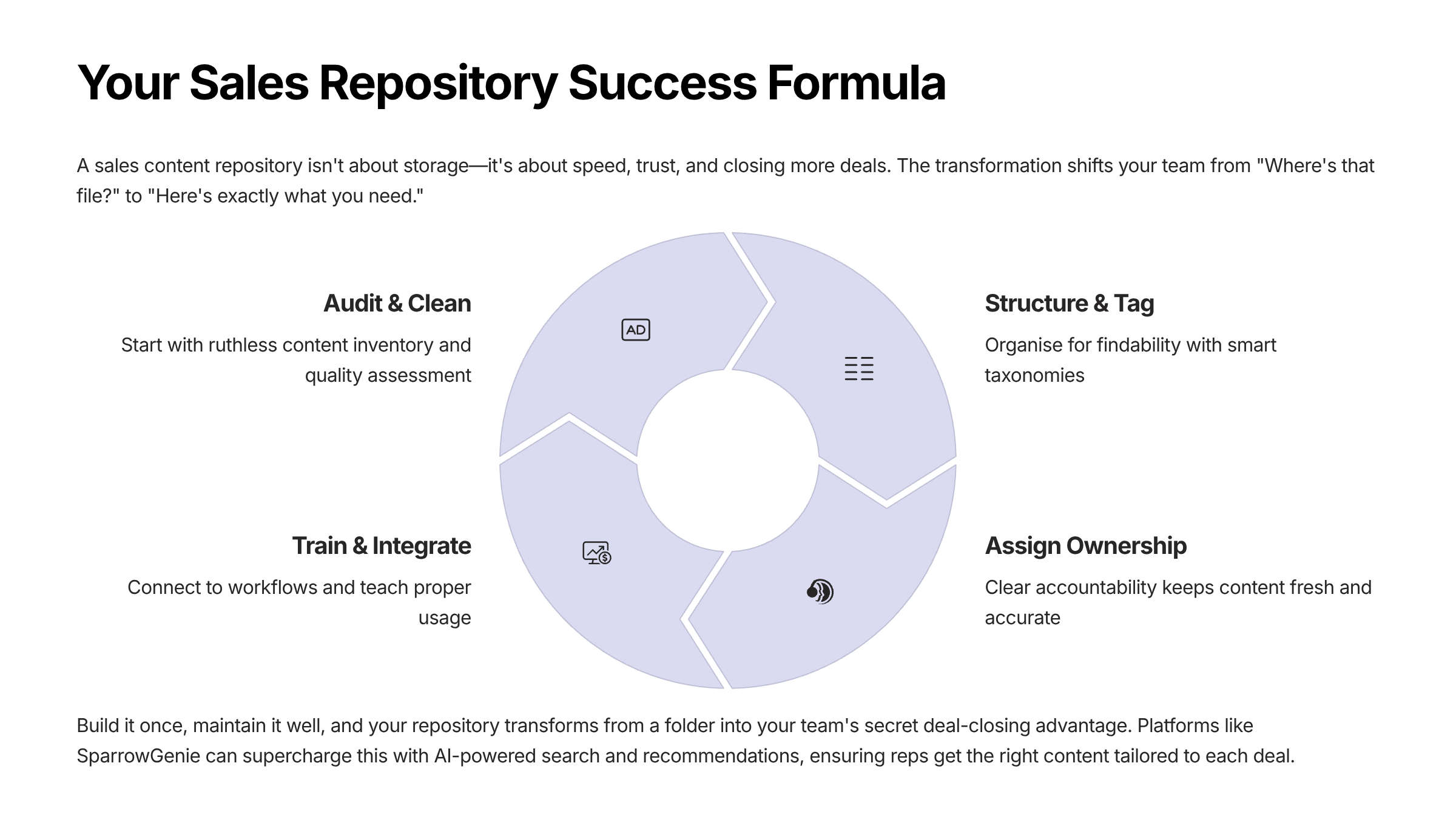 Build it once, maintain it well, and with tools like SparrowGenie at your side, your repository stops being a folder—it becomes your team’s secret deal-closing advantage.