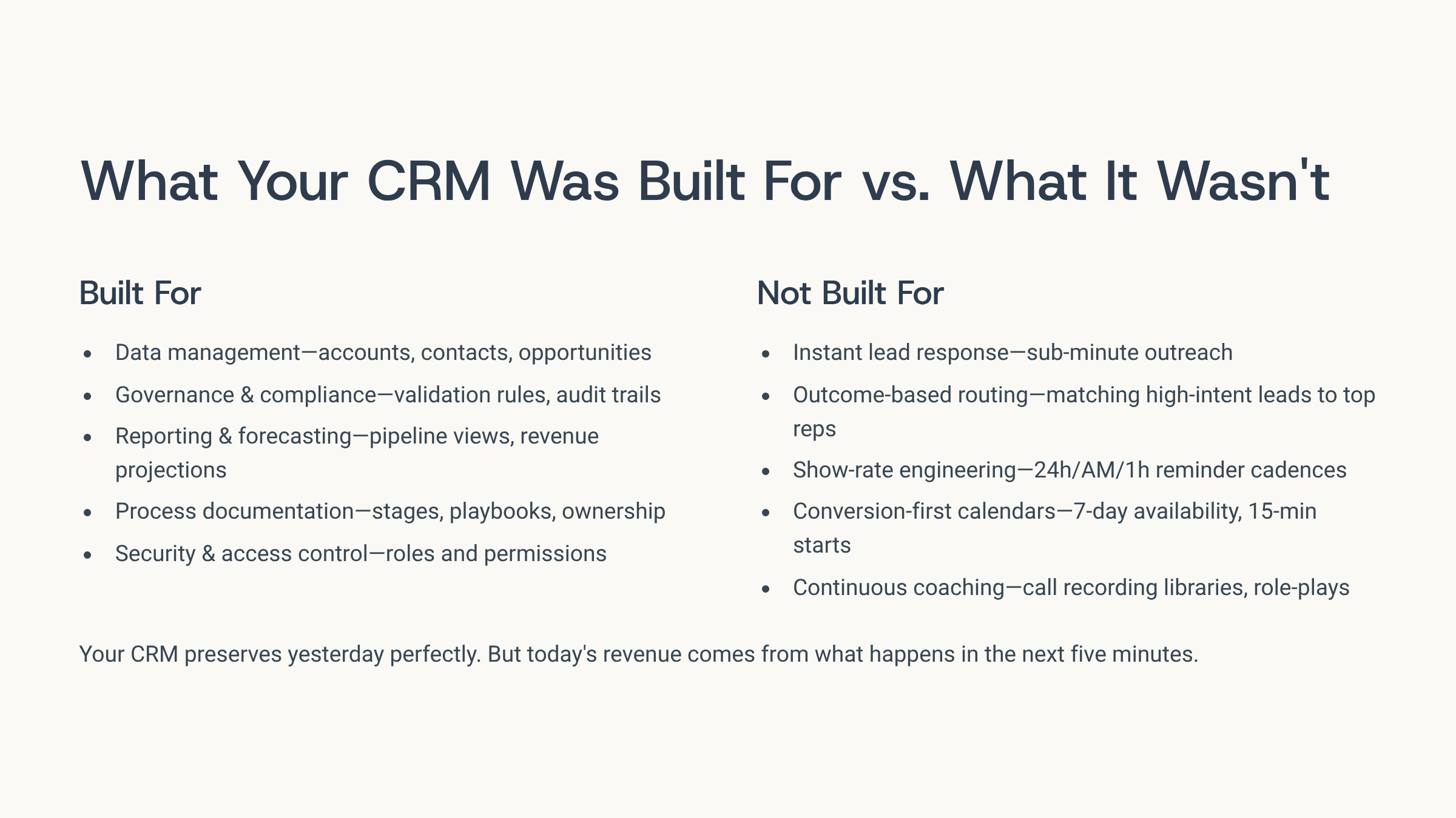 Your CRM might preserve yesterday perfectly. But today’s revenue comes from what happens in the next five minutes.