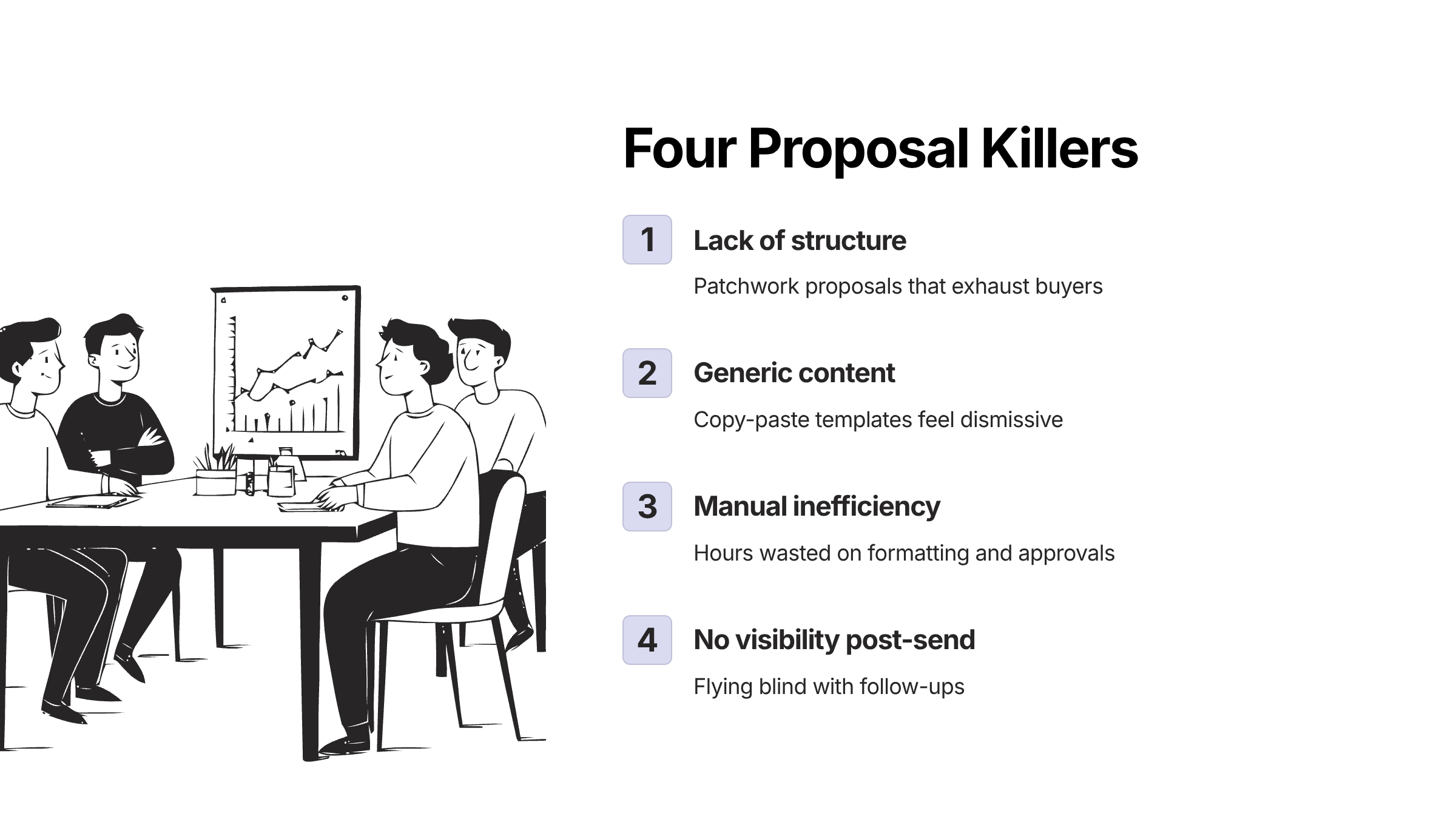 Instead of being a growth engine, proposals become a drain on time, energy, and credibility. In today’s high-velocity sales environment, those are losses no team can afford.